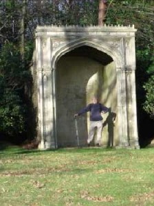 The last architectural creation (and the most beautiful), we passed was the SUMMER HOUSE, just a wonderful ornamental arch, very simple yet so romantic. Dick posed for a photo shoot. May I say that he really didn’t look as if he was fading away, although he had previously confessed to me anxieties re his health, it seems he is fast losing weight, his trousers are falling down and his belt no longer holds them up properly and he gave the impression he’s recently been deprived of cake due to the disrepair of Ruth’s cooker, If any one has any spare cake I’m sure it will be appreciated by Dick.
